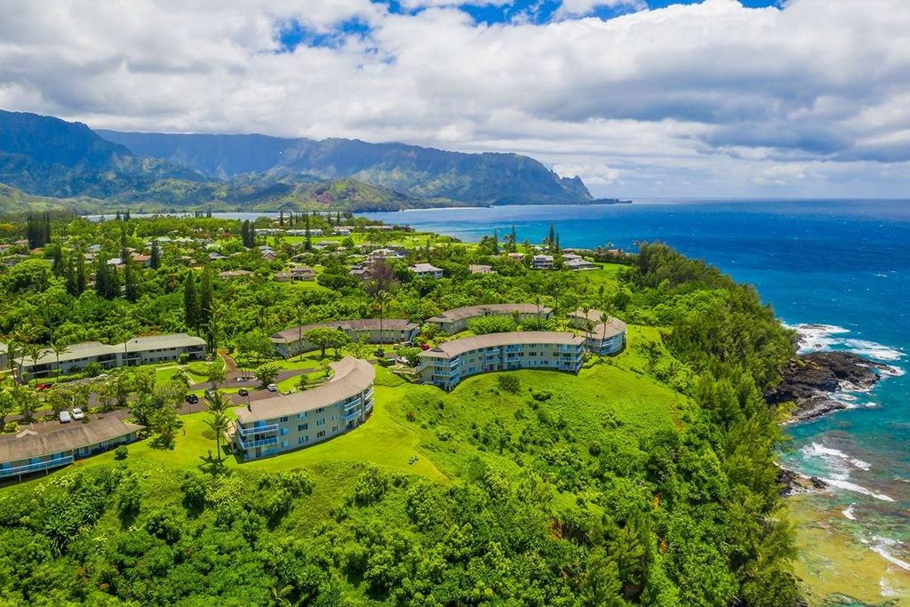 Alli Kai is perched on a bluff in Princeville, a very popular Resort Community. Close to shopping, restaurants, Iconic Hanalei Bay, World Class Golf, Tennis and Views of Endless Ocean. There is a path to the ocean nearby called Turtle