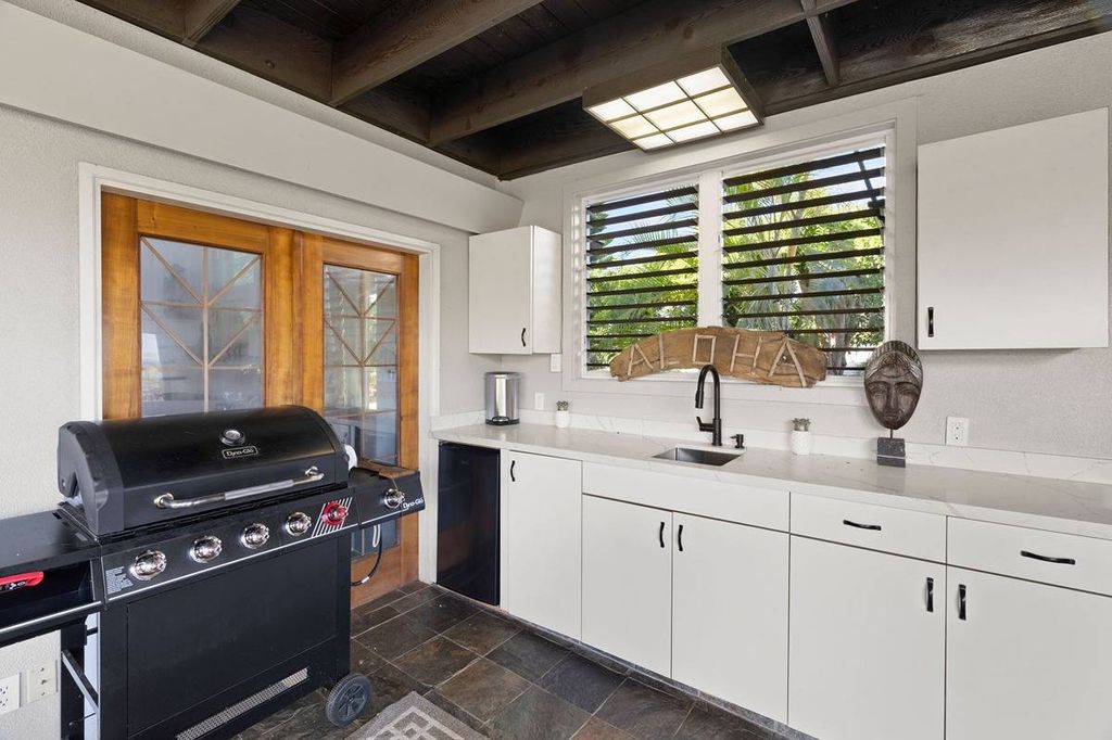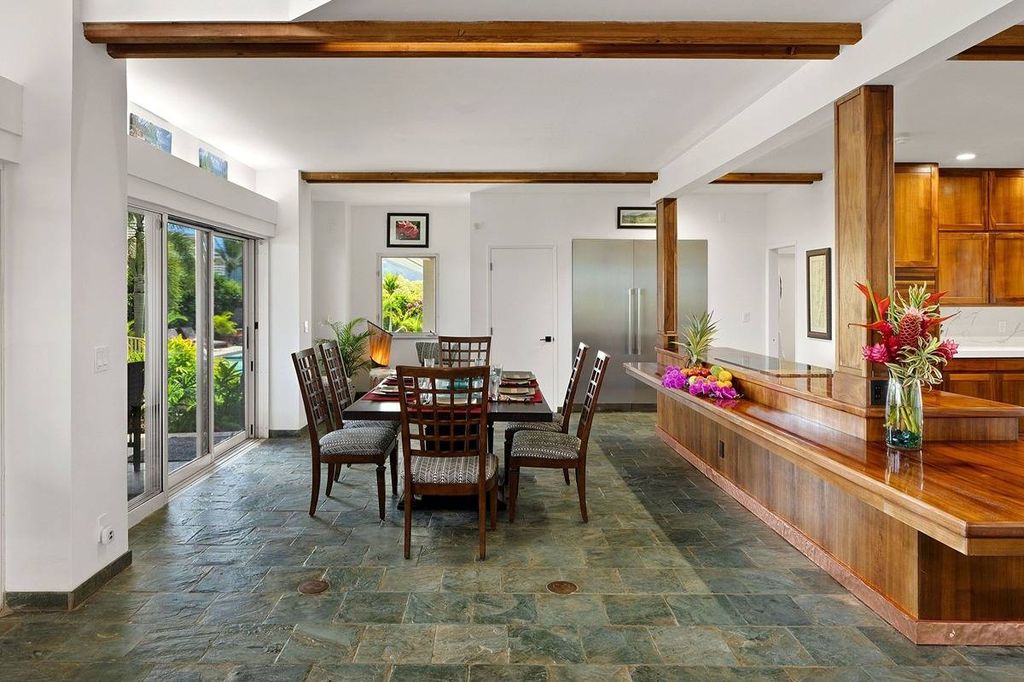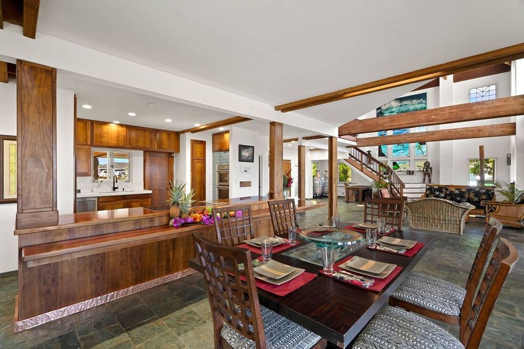 This exquisite 4 bedroom, 3.5 bath home has been fully remodeled with high end finishes throughout. An open floor plan and soaring 30' ceilings seamlessly connect the gourmet kitchen, dining and living areas. With over 6000sqft under roof, this home boasts generous indoor and outdoor space capturing the essence of Hawaii living at its finest.