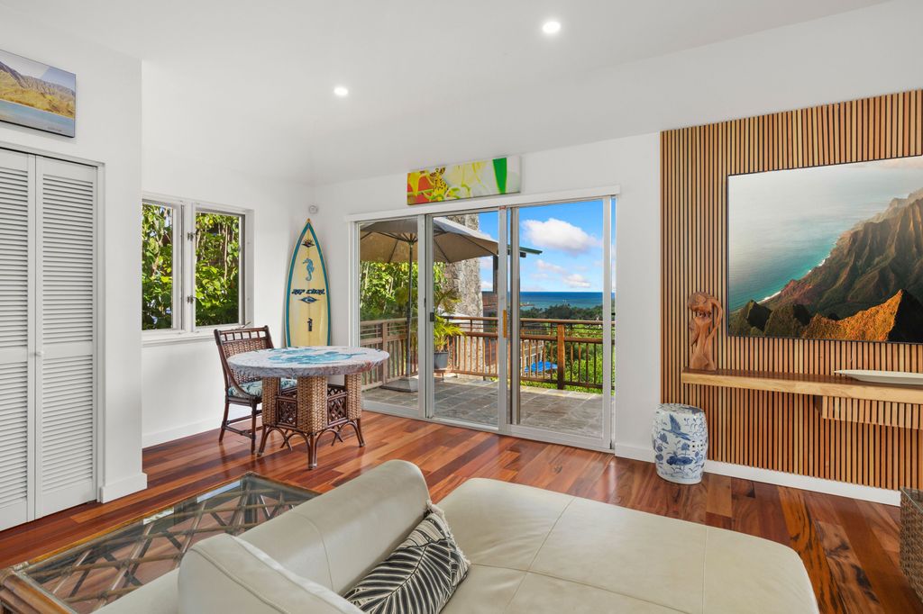 Nestled on over half an acre of land, this impressive, privately gated estate is surrounded by panoramic views of the ocean, Kalapaki Bay and the Haupu Mountains. Stunning ocean vistas can be enjoyed from almost every room in the house!