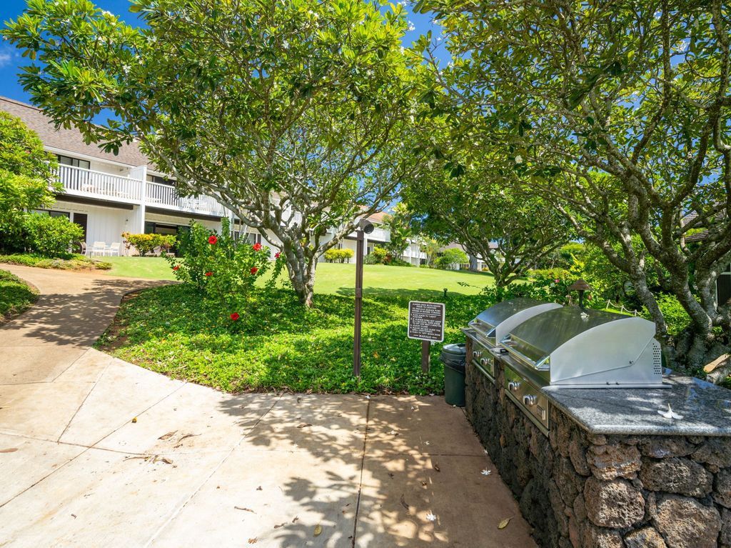 Unit #109 is ideally situated within the resort: it's a short and equal walk to both the beach and the Poipu Beach Athletic Club. This quieter section of the property provides a serene setting, away from the activity of the central lawn area, making it perfect for those seeking relaxation. You'll enjoy the best of both worlds"”easy beach access for morning strolls or sunset views, and convenient entry to resort amenities like the pool, tennis courts, fitness center, and the Cabana Bar & Grill.