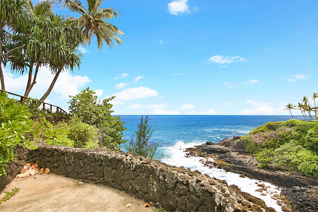 Behold! The most dramatic oceanfront setting and vista situated along the coastline in all of Poipu. Hale Moku (Ship House in Hawaiian) was originally built in 1936 and remodeled over the years, cleverly designed and constructed on a solid lava rock outcropping safely above the waterfront with semi-circular decks off the living room and master (primary) bedroom above, facing the ocean - all which give the strong sense of being on the bow of a ship piercing and advancing through the incoming rolling waves below. The subject property encompasses three contiguous parcels adding up to approximately 25,586 sf. The main living area consists of 4 bedrooms, 3.5 baths, and a separate attached fully self-contained caretakers' quarters. This property is located on the southwestern most point of the US offering unobstructed views of 50+ square miles of the South Pacific horizon with panoramic views from Makahuena, the Poipu coastline, Spouting Horn, and the Island of Niihau in the distance. As you relax and take in the views, you actually experience a feeling of totally immersing yourself within an invaluable living painting that is forever changing as the days pass with breathtaking sunrises and sunsets, incomparable to anywhere else on the planet. One also experiences watching innumerable turtles frolicking in the surf and gathering in Turtle Cove below and schools of Spinner dolphins cruising by as they meander down the coast. You may also enjoy watching Humpback Whales breaching nearby between November and April as they migrate from Alaska to the warm Hawaiian waters during the wintertime to give birth to their offspring. Poipu and Shipwrecks beaches are only a leisurely 10-minute walk away with several excellent restaurants within walking distance, as well. Your biggest challenge owning or having the privilege in staying at Hale Moku is ever leaving, once you are there...