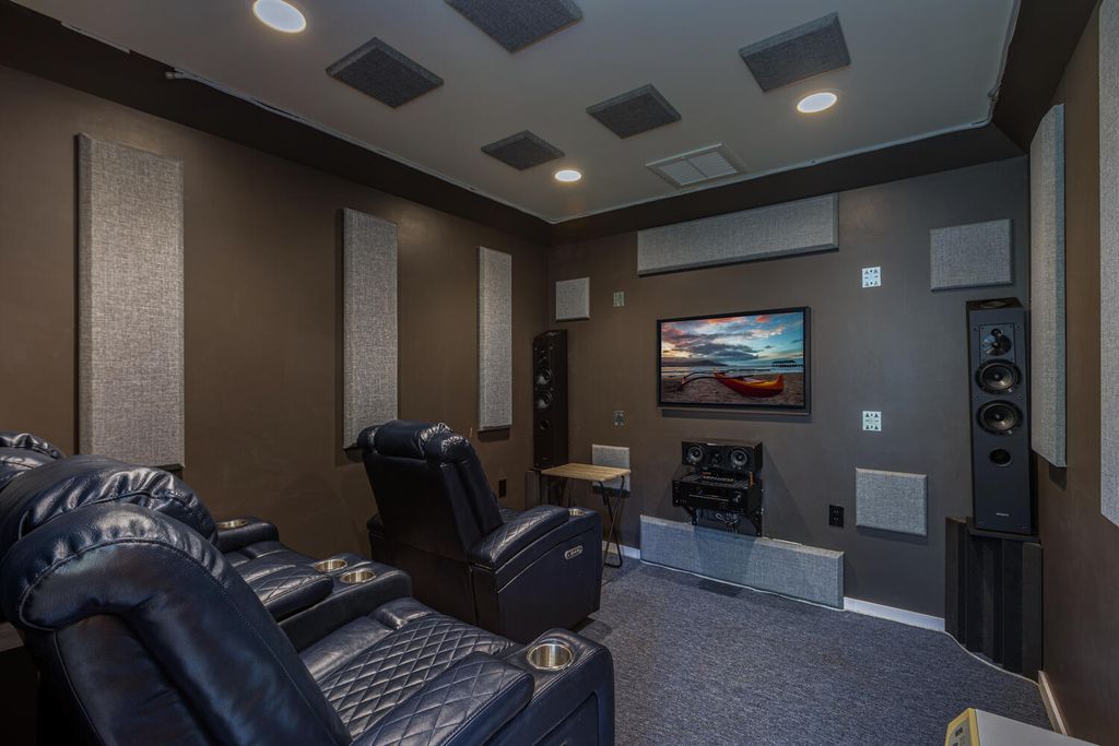 Step outside to an outdoor oasis complete with lava rock wall showers and a spacious fire pit, perfect for gatherings or quiet evenings. The two-car detached garage includes an office space, private media room, and hurricane shelter, ensuring both functionality and elegance.