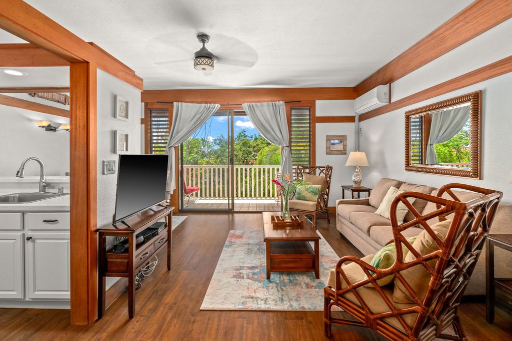 Rare Find - Remodeled Kiahuna Plantation unit with an Air Conditioner installed and a peek of the ocean!! Located within the VDA, this fully renovated property is perfect as a home or a vacation rental. Beautifully appointed and turnkey, this is resort-style living at its finest!