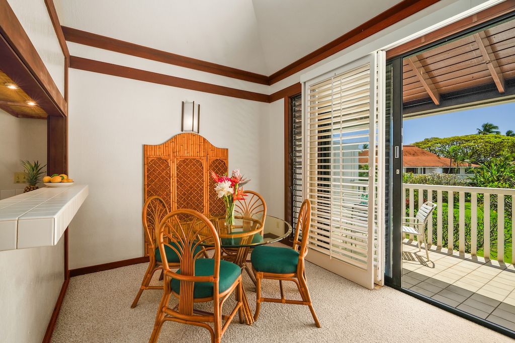This is a leasehold property. Perfectly Priced With An Excellent Location. Unit #62 at Kiahuna Plantation is located on the top floor with no one above you, giving you added privacy and quiet. The vaulted ceilings create a more open feel, and the unit features plantation shutters, a private lanai, and air conditioning has already been installed.