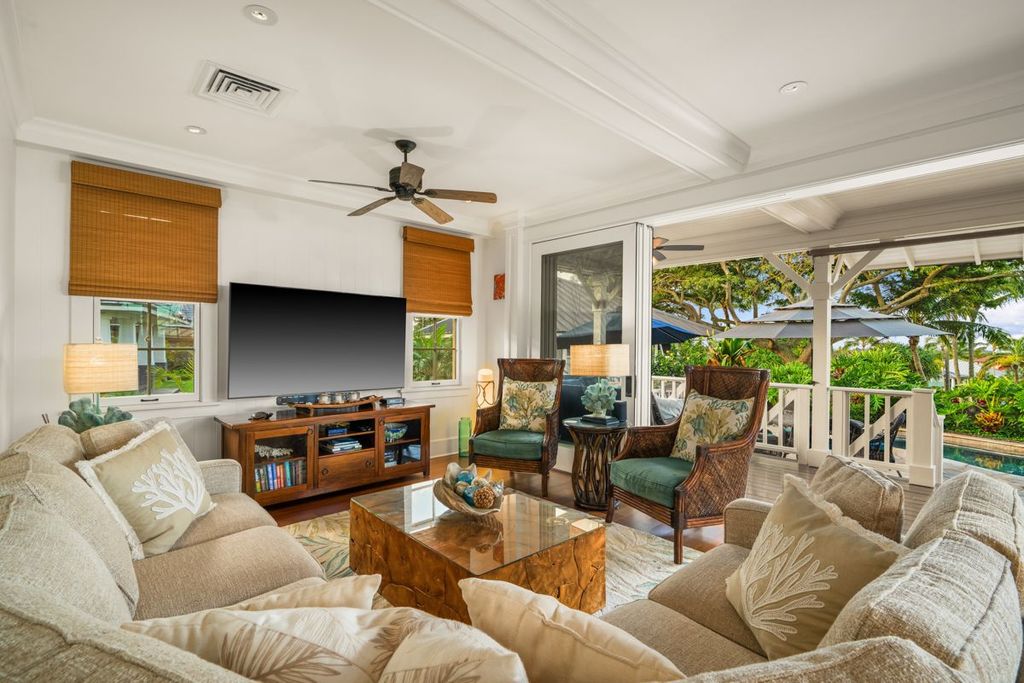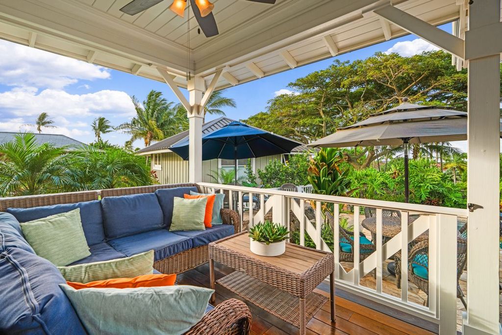 Additional upgrades include a custom golf cart garage/carport, multiple owner lockouts, expanded storage, and a new Samsung washer & dryer. Honu Hale is ideally located near scenic walking paths leading to the private Kukuiʻula Clubhouse and The Shops at Kukuiʻula, offering the best of island living at your doorstep.