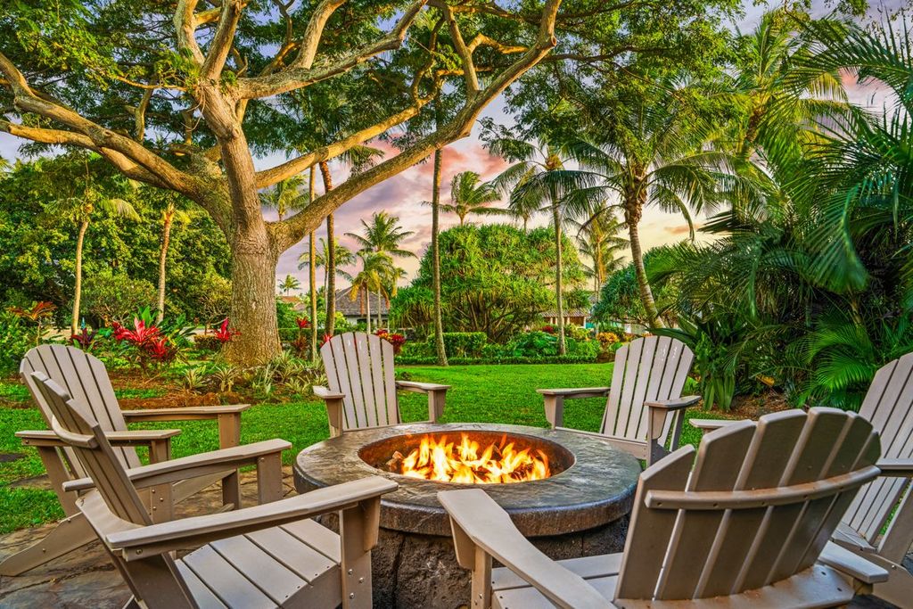 The broad front lanai welcomes you into the great room, an open and breezy retreat where natural light pours in. Step onto the back lanai, where a private oasis awaits"”featuring a tropical pool and spa, tiki bar, fire pit, and a dual custom barbecue island with Coyote pellet & gas grills. Just steps from the second hole of the Tom Weiskopf-designed KukuiÊ»ula Golf Course, this home seamlessly blends indoor-outdoor living with lush mountain views framed by vibrant native landscaping.