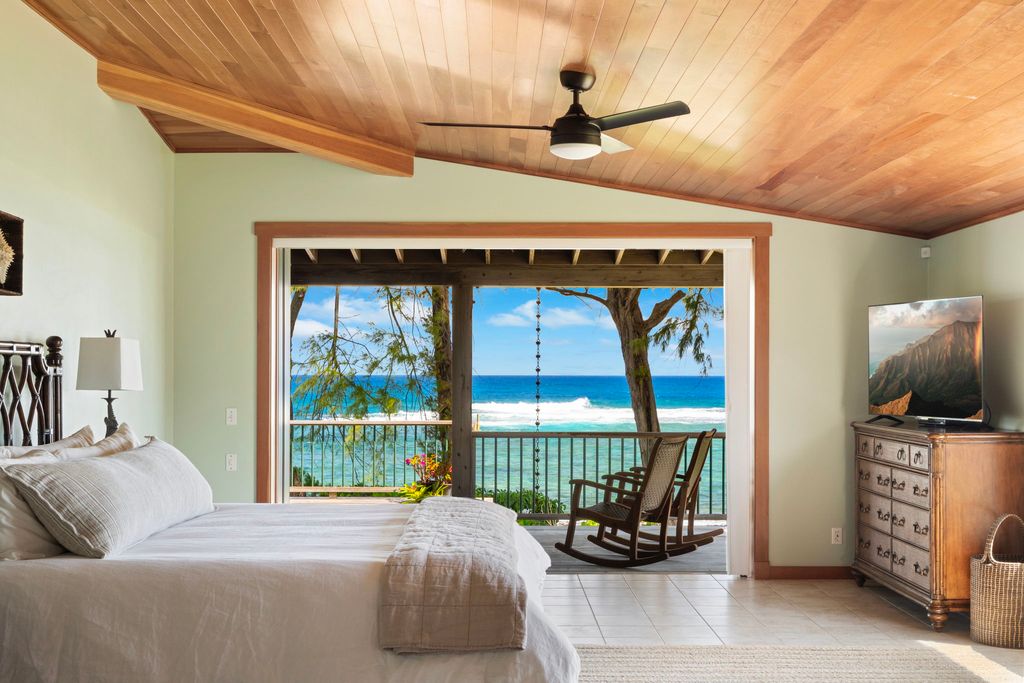 Nestled along the lush Haena coastline of Kauai, this gated oceanfront home combines privacy and laid-back luxury. Ideally situated to capture the views, the home offers 4 bedrooms, 3 full and 1 half bathrooms in an impressive 4,774 sqft. The open floor plan is ideal for both family life and entertaining, making it perfect for hosting guests or unwinding in style.