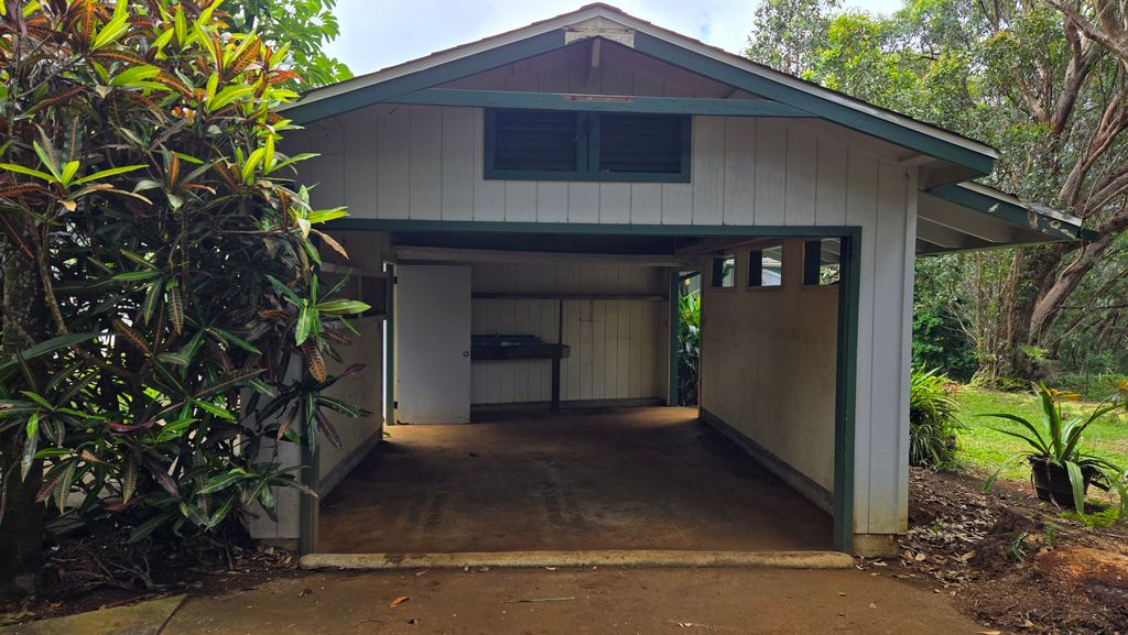 This nearly 2-acre parcel, located off Wawae Road, is peaceful and serene, offering privacy and stunning views of Lawai Valley. The dwelling consists of a 872 SF, 2-bedroom, 1-bath home that features a wrap-around deck, office space, and a garage. Additionally, the sale includes a multifunctional 452 SF yurt offering open space that can be used as a bedroom, office, workout room, or workshop. The facility infrastructure includes underground electricity, telephone, cable, and county water.