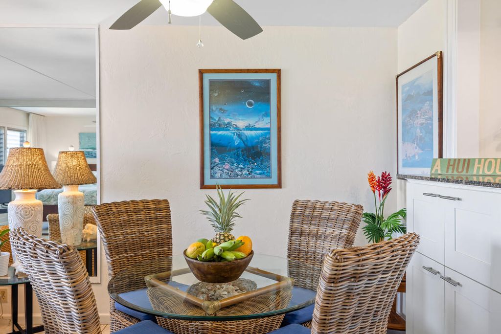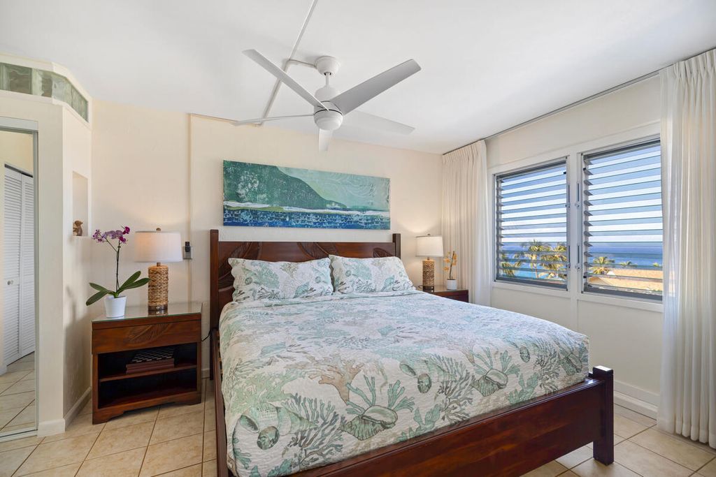 Sunset Kahili #304 is a beautifully updated 1-bedroom, 1-bathroom oceanview condo. Located on the third floor of this sought-after Poipu complex, this bright and airy unit captures the essence of island living with year-round sunsets, cooling tradewinds, and the soothing sounds of the surf. Tastefully renovated, the open-concept layout features an upgraded kitchen with granite countertops and porcelain tile flooring throughout. The bathroom includes a walk-in shower and modern finishes, while the bedroom, complete with a king bed and en-suite bath, is smartly separated from the living area by an elegant shoji-style sliding door.