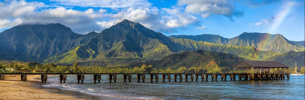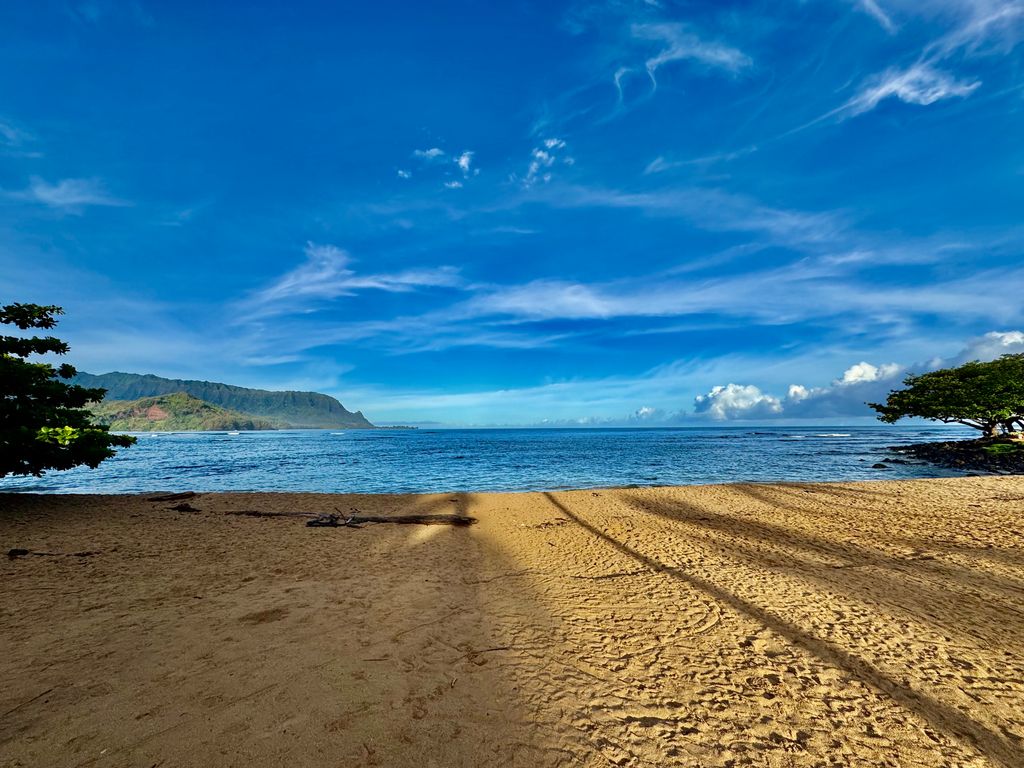 Private paved trail to Hanalei Bay's golden shoreline and world-class surf