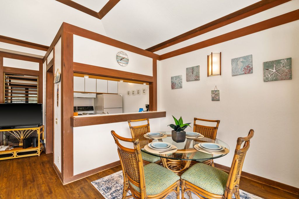 Fully-furnished successful vacation rental!! An air conditioner has been installed for added comfort. Located within the VDA, this Kiahuna Plantation unit is perfect as a home or a vacation rental. Beautifully upgraded with stylish new flooring, updated furniture, and tasteful finishes throughout, this turnkey property is resort-style living at its finest.