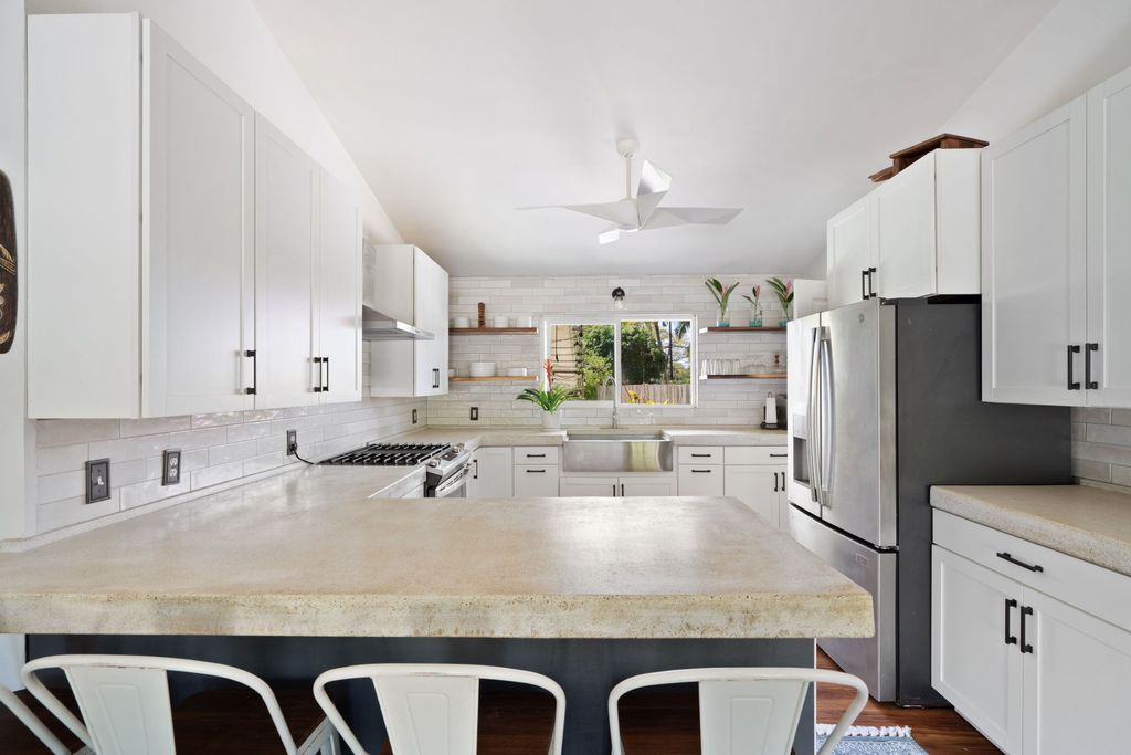 The lush yard is a dream for those who love the outdoors, filled with fruit trees (banana's, coconuts, starfruit, avocado, dragonfruit, ulu & more), tropical plants, veggies, and garden space"”a perfect blend of beauty and function. Multiple areas around the property make it easy to host family, friends, and guests.