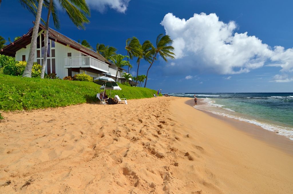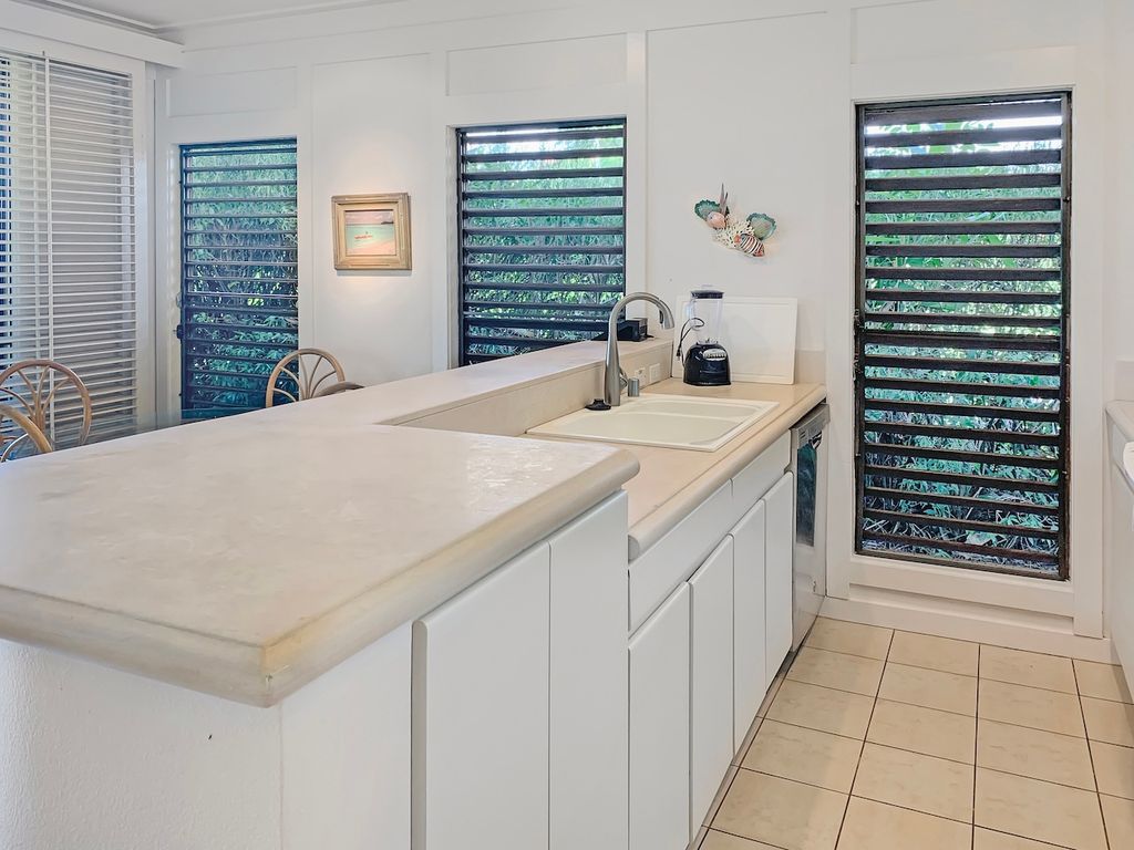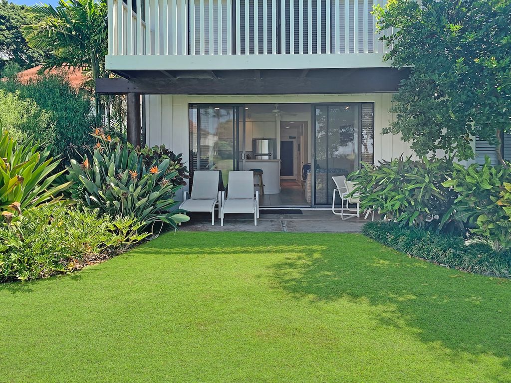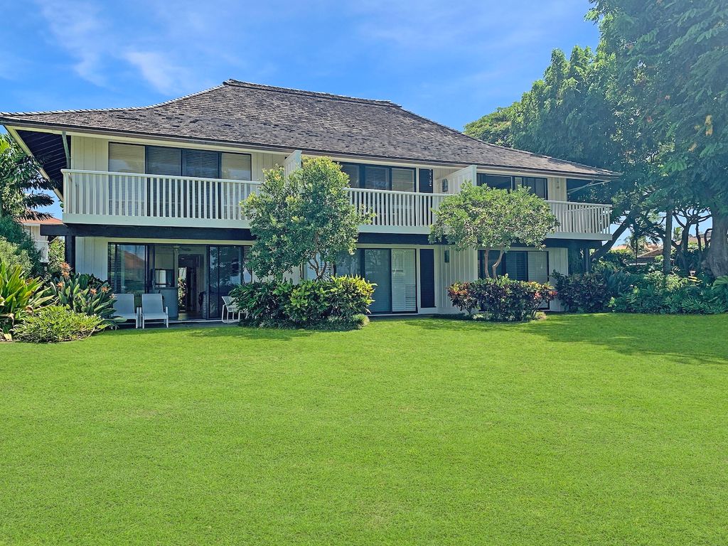 This is a leasehold property. Ocean View Premier condominium with perhaps one of the best locations at the Kiahuna Plantation Resort. No need to put on shoes to get to the white sandy beach from unit #28, you are just steps away across a green expansive lawn. This sweet Beach Bungalow is a ground floor corner unit with multiple oversized louvers on the side walls providing lots of air-flow and light. A true ground floor with a no stair entry and the lanai opens directly out to a huge lawn area.