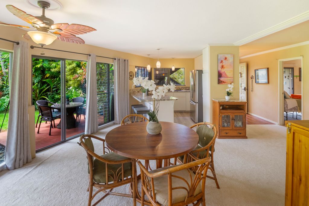 Privately situated away from the road, pool, and parking lot, this condo is a true sanctuary. You're embraced by tropical landscaping, fruiting trees, and peaceful surroundings. On-site, enjoy fresh bananas, avocados, oranges, papayas, and lilikoi"”a true taste of island living. Inside, updated flooring and tasteful furnishings reflect a fresh, island-style vibe.
