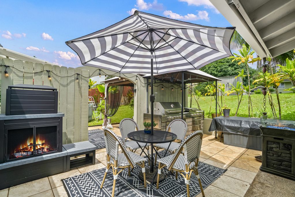 Outdoor living paradise - perfect for entertaining with modern fire features & custom kitchen✨