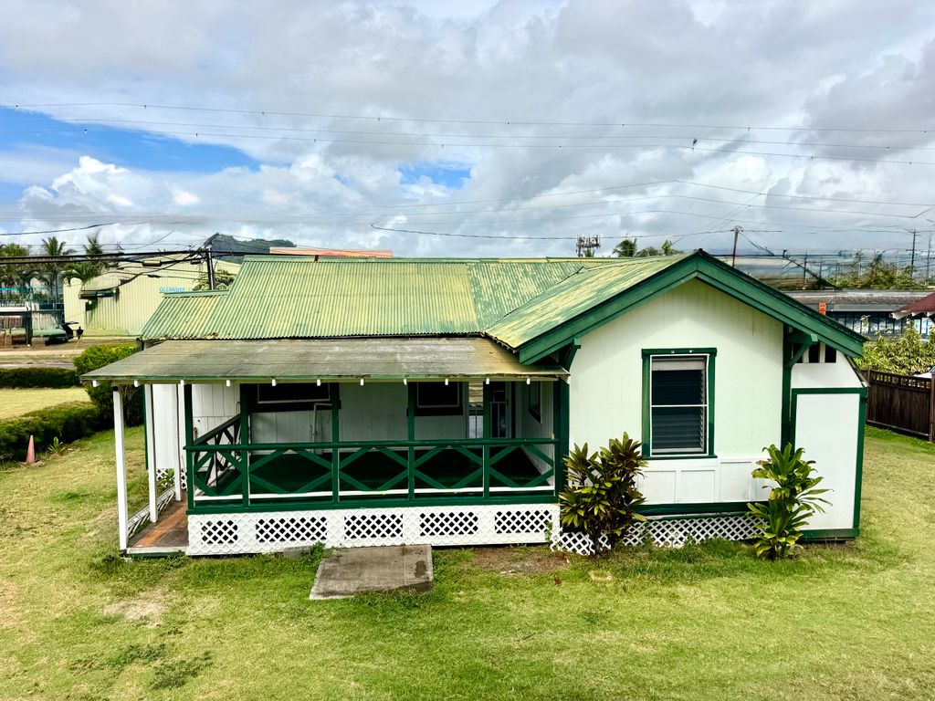 This building is a classic and quaint plantation style, 2 bedroom 1 bath home with a prime location In Kapaa's Commercial area with highway frontage and paved off street parking. Owner can apply for a commercial use permit to allow the existing single family residence to be converted into commercial use for various businesses.