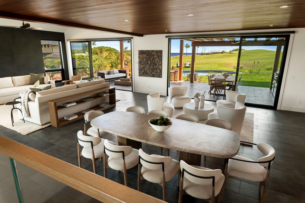 Experience modern Hawai'i living within KukuiÊ»ula on KauaÊ»i's sun"‘drenched South Shore. Fronting the 9th fairway of Tom Weiskopf's championship golf course, this six"‘bedroom residence blends minimalist architecture with regional materials. Designed by Kelly & Stone in partnership with award"‘winning Noe Studio, the home uses structural insulated panels to create a solid building envelope"”promoting energy efficiency and indoor air quality while standing up to coastal weather. Ayous hardwood, volcanic stone, and cut puka lava connect the structure to its surroundings, and floor"‘to"‘ceiling glass doors pocket away to extend living spaces onto the lanai.