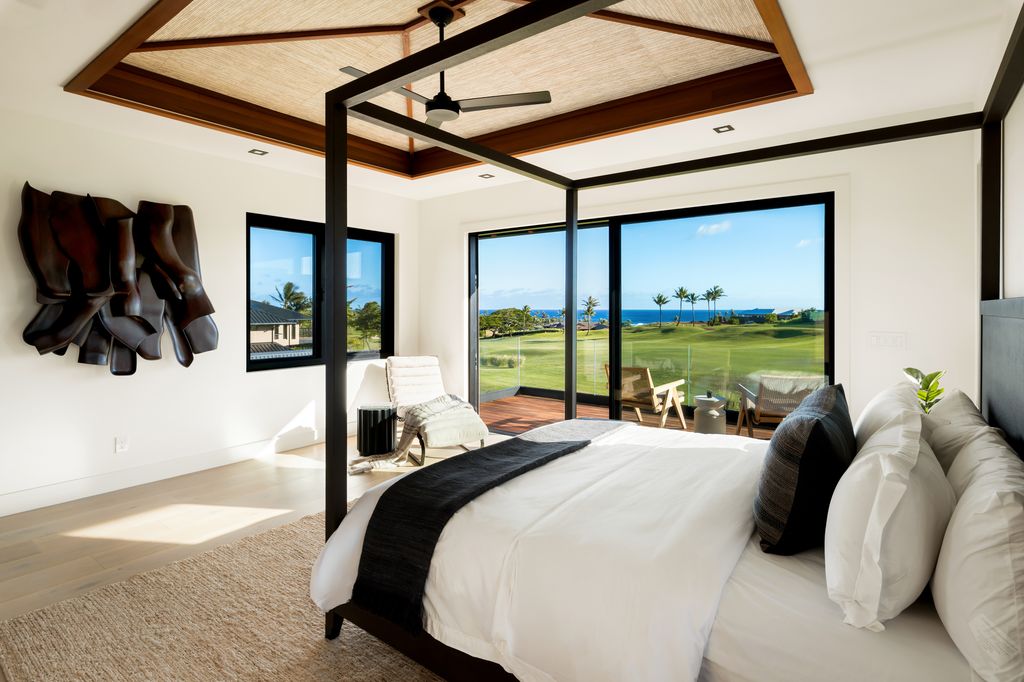 Inside, imported Italian cabinetry and doors from Nova Cucina, Pianca, and Barausse complement neutral colors and natural textures; the open"‘concept kitchen flows into spacious living and dining areas, and a separate media room, spa, gym, and guest suites provide flexibility for hosting. Suites are thoughtfully arranged for privacy and long"‘term comfort. Outdoors, a pool and spa overlook the golf course and KukuiÊ»ula Harbor, with sunset views across the South Shore.
