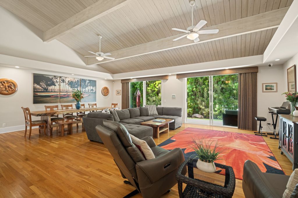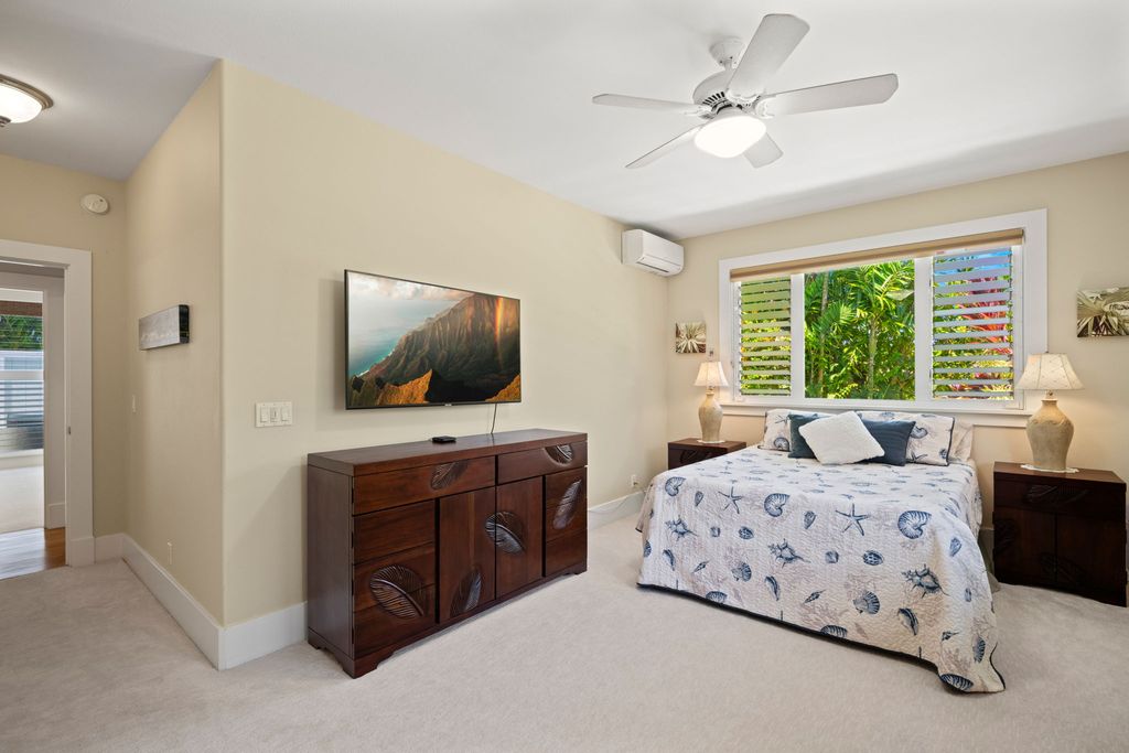 Step inside to find beautiful tile, hardwood flooring, soaring ceilings, and ample windows that invite natural light and refreshing tradewinds throughout the home. For added comfort, the three main bedrooms are cooled with efficient split-system air conditioning and beautiful upscale carpet for a cozy sanctuary.