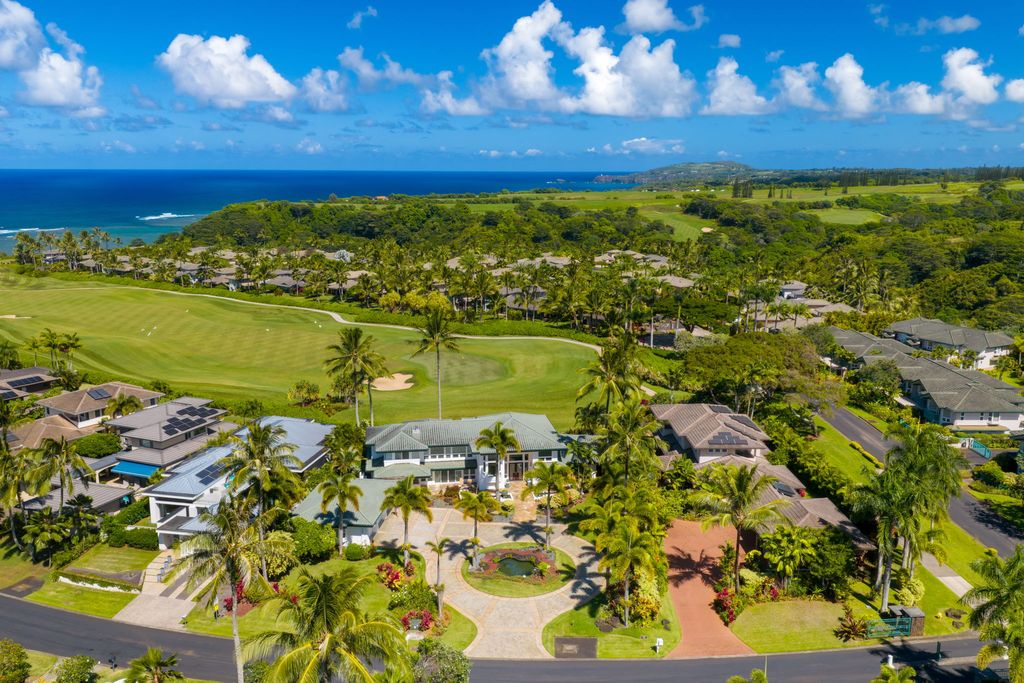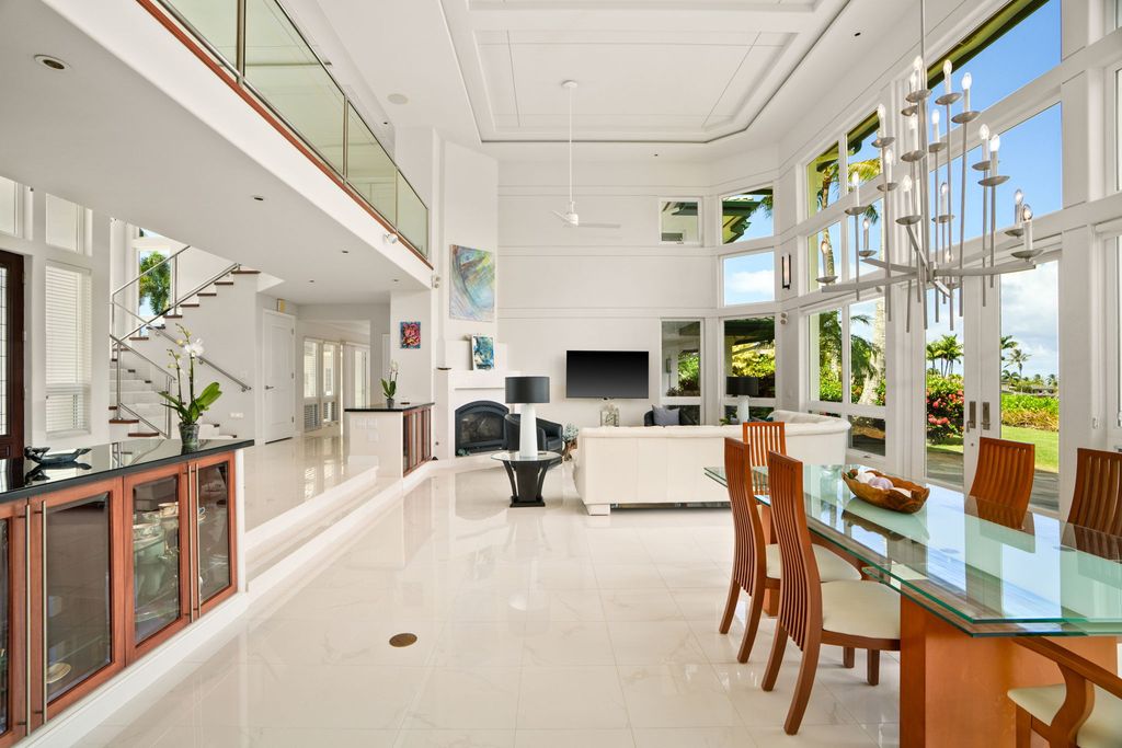 With over 4,100 square feet of interior living space, you step through a formal foyer into a dramatic Grand Room with soaring ceilings and a sweeping wall of windows. The view"”stretching from the Prince Golf Course to the ocean"”is uninterrupted and visible from the Grand room.kitchen, den, office, all three bedrooms, and the luxurious master bath.