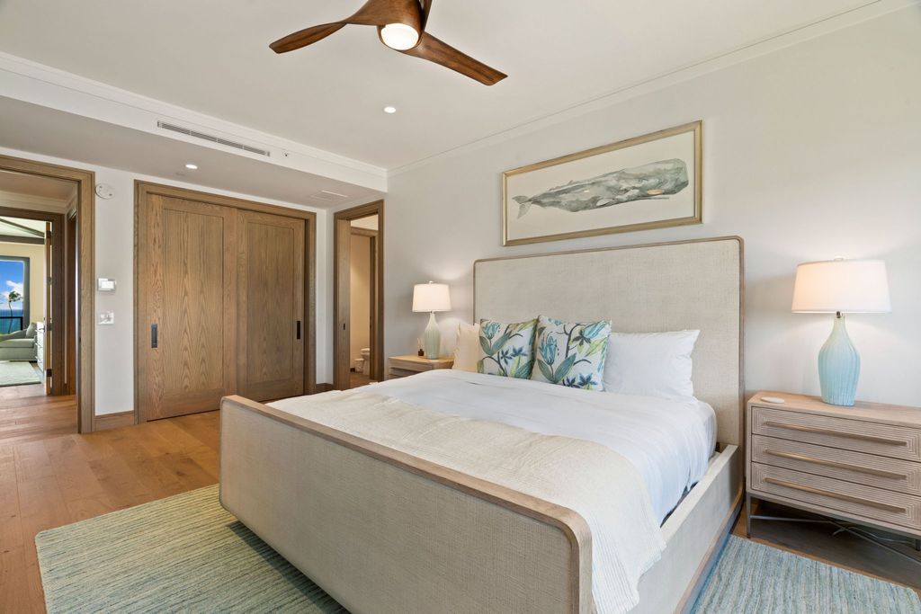 Laola Nani 3003 at Timbers Kauai is a breathtaking 2-story, 4-bedroom, 4.5-bath ocean-view townhome overlooking the 15th hole of the prized Ocean Course at Hokuala - a signature Nicklaus designed course. The furnished villa features a bright contemporary design which seamlessly blends indoor & outdoor living. The great room has high, floor-to-ceiling glass doors which open to a generous lanai and a private plunge pool, built in BBQ, and sweeping views of the sea and coastline beyond. The kitchen is a chef's dream with Thermador Pro Grand Series appliances, wine/beverage cooler, quartz countertops and custom tile backsplash. Each bedroom features an en suite bathroom, top-of the line finishes, and a lovely outdoor shower in the lower primary suite. This is the only 4-bedroom unit that is currently available with a desirable fenced-in yard.