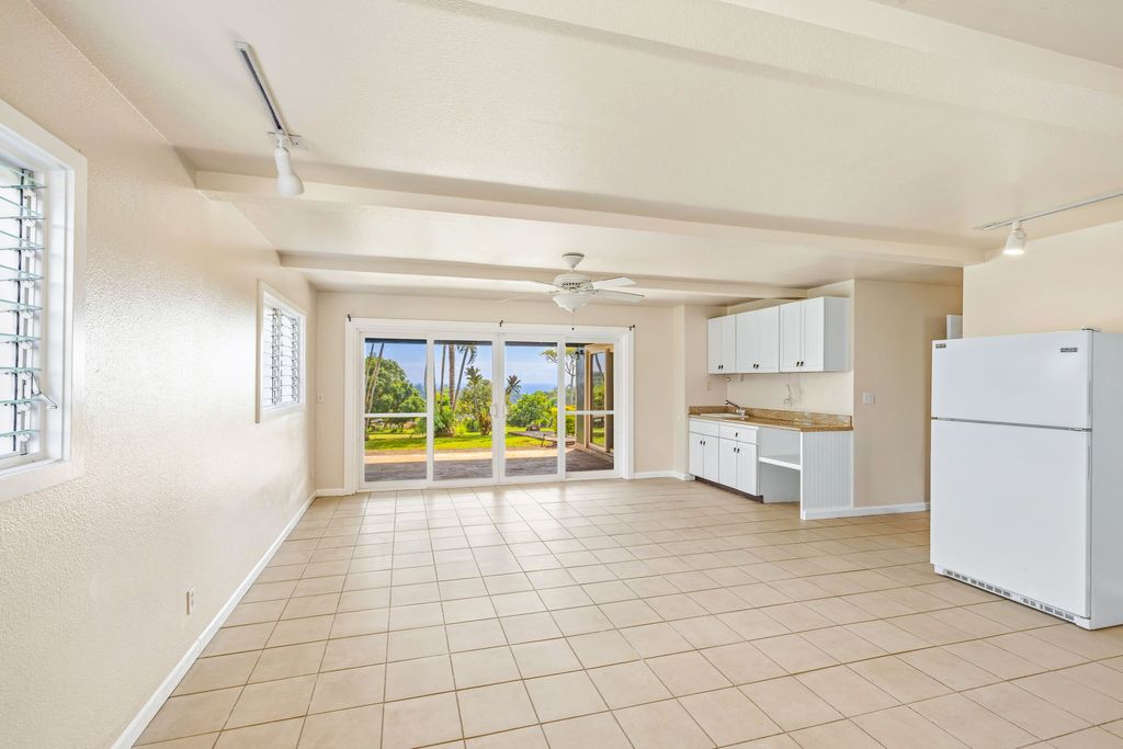 This two-story Lawai residence sits on nearly three-quarters of an acre with sweeping views from the Kawaikini ridge to the South Shore coastline. A private driveway ensures both privacy and unobstructed scenery.