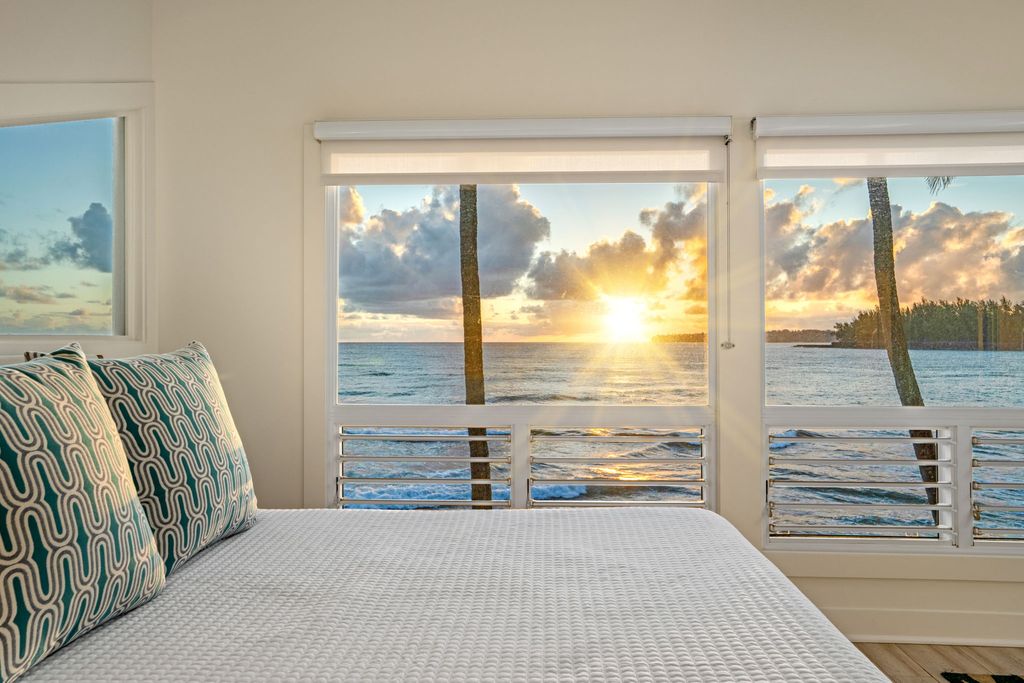 The residence is designed for island living, featuring expansive ocean-view living spaces and four lanais that invite seamless indoor/outdoor flow. Two of the bedrooms function as private suites with their own living areas, offering guests or family members extra space and privacy. Step directly from the backyard onto the sandy shoreline of Haʻena, where snorkeling, surfing, and glowing sunsets are part of everyday life.