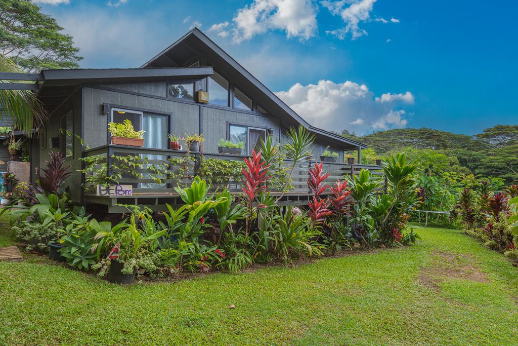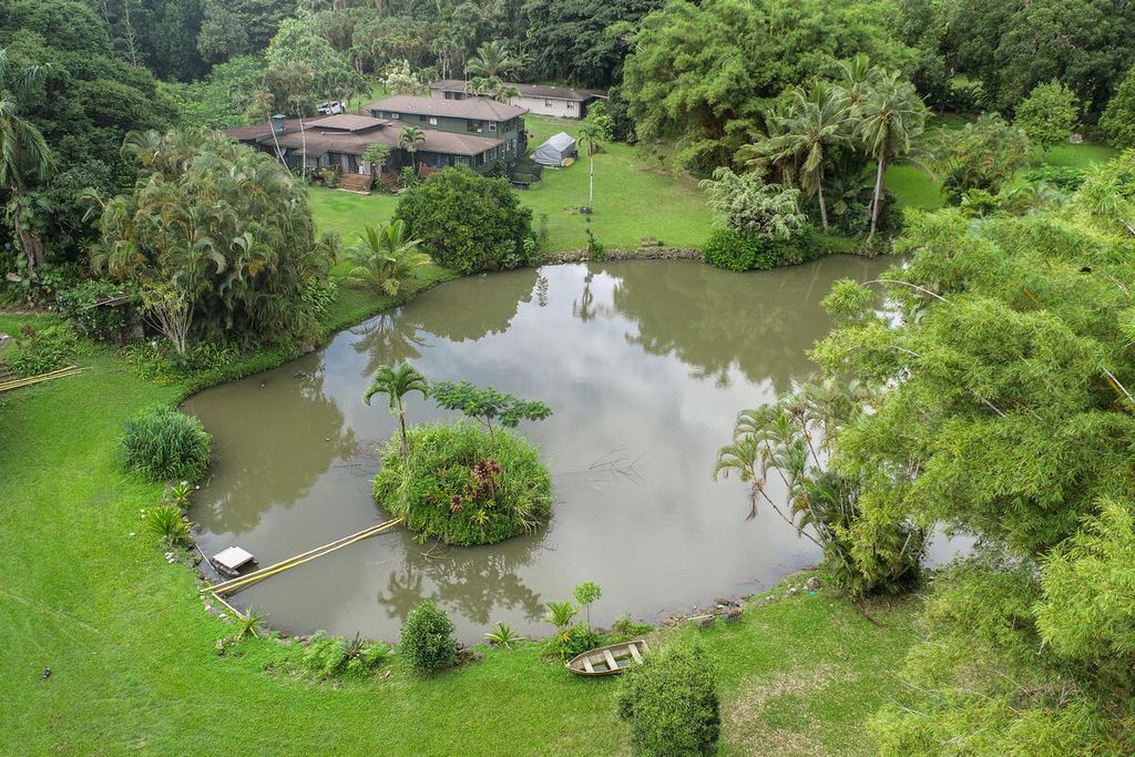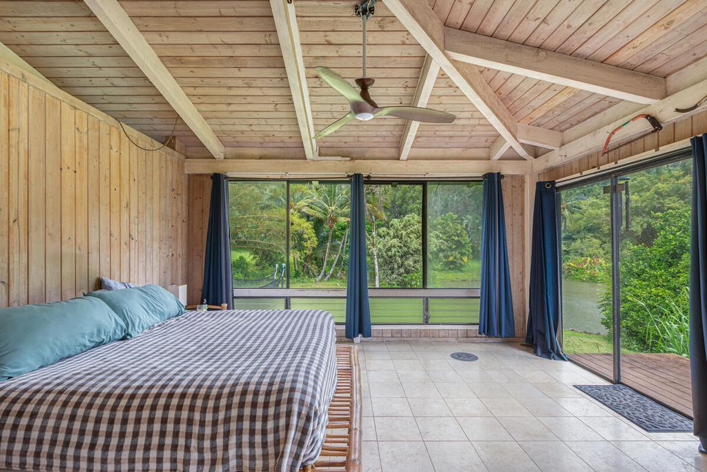 This 27 acre piece of paradise is one of a kind on Kaua'i. The 4 bedroom/6.5 bath main residence is warm and functional. It offers true island style living with many windows and garden views from every room. The koa kitchen is a chef's delight. A stream runs through the property and connects with the river that has a waterfall and swimming hole. There are 4 other separate cottages that offer additional living space for guests, renters or caretakers. There are a total of 15 bedrooms and 18.5 baths on this income producing sanctuary.
