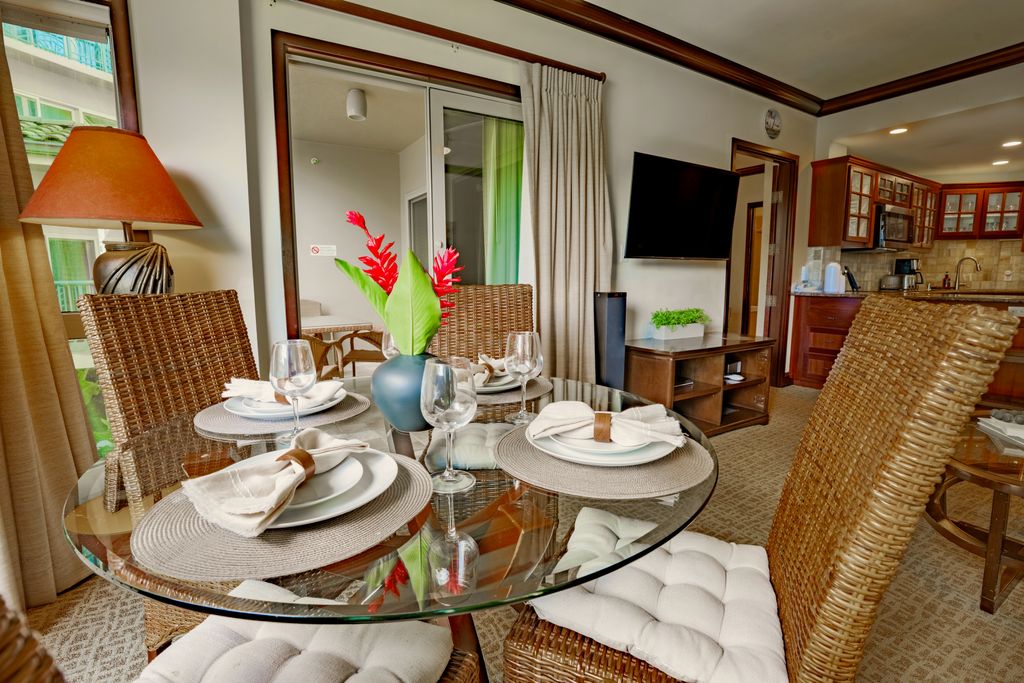 Presenting villa F202, a beautifully appointed 2-bedroom, 3-bath at Waipouli Beach Resort in KapaÊ»a. This second-floor residence (approx. 1,158 sf) features two private bedroom suites separated for privacy, each with an en-suite bath, plus a convenient bath with shower off the main living area. The kitchen is designed for everyday living and hosting"”granite countertops, Sub-Zero refrigerator, Wolf cooktop/oven, and solid wood cabinetry"”flowing into an open living/dining space and out to two covered lanais. Bathrooms are finished in travertine with walk-in showers; primary suite includes a jetted soaking tub. Central A/C, in-unit laundry, and elevator access add comfort and ease. Enjoy the ease of the second floor "” the only level that connects seamlessly to each building.