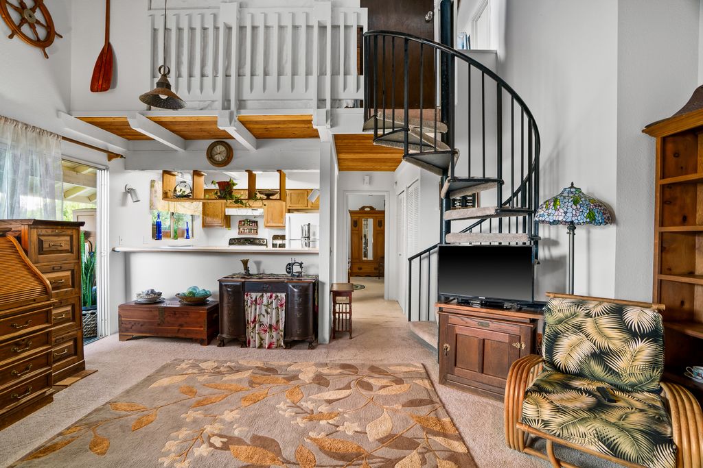 Inside, the A-side was freshly painted in 2024, while the B-side received new paint and luxury vinyl plank flooring (Koa) in June 2022. Vaulted ceilings create a bright, airy feel with abundant natural light and openness. From the loft, enjoy a peekaboo ocean view, and from the lanai, take in gorgeous island sunsets.