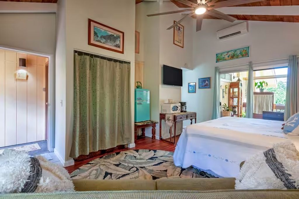 B Side: Separate Entrance, Efficient Studio Layout, Private Lanai, Full Bath with Contemporary Finishes.