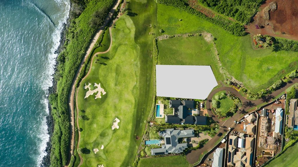 Picture-perfect views of the majestic ocean and verdant mountains unfold before you, painting a breathtaking backdrop for every moment spent on this remarkable property. Experience the magic of Kauaʻi sunsets as they cast a warm glow over the horizon, transforming the sky into a canvas of vibrant hues. Perched gracefully alongside the meticulously groomed fairway of Kukuiʻula's signature 14th hole, this homesite offers a seamless integration of natural beauty and refined elegance.