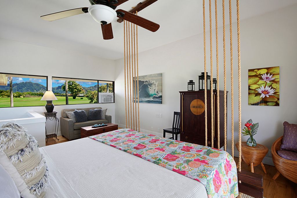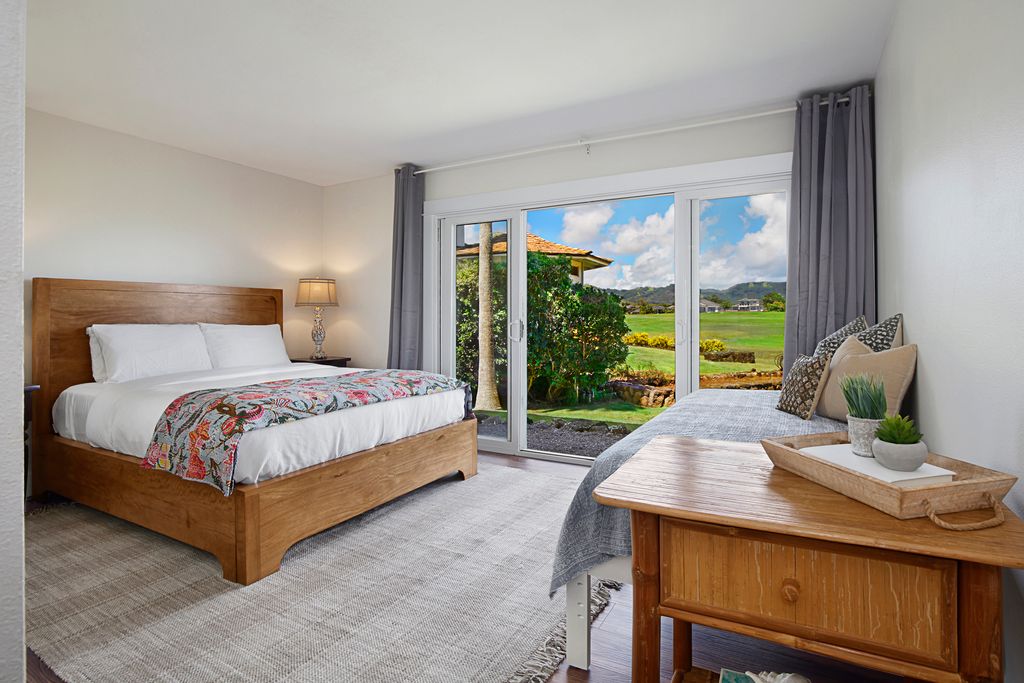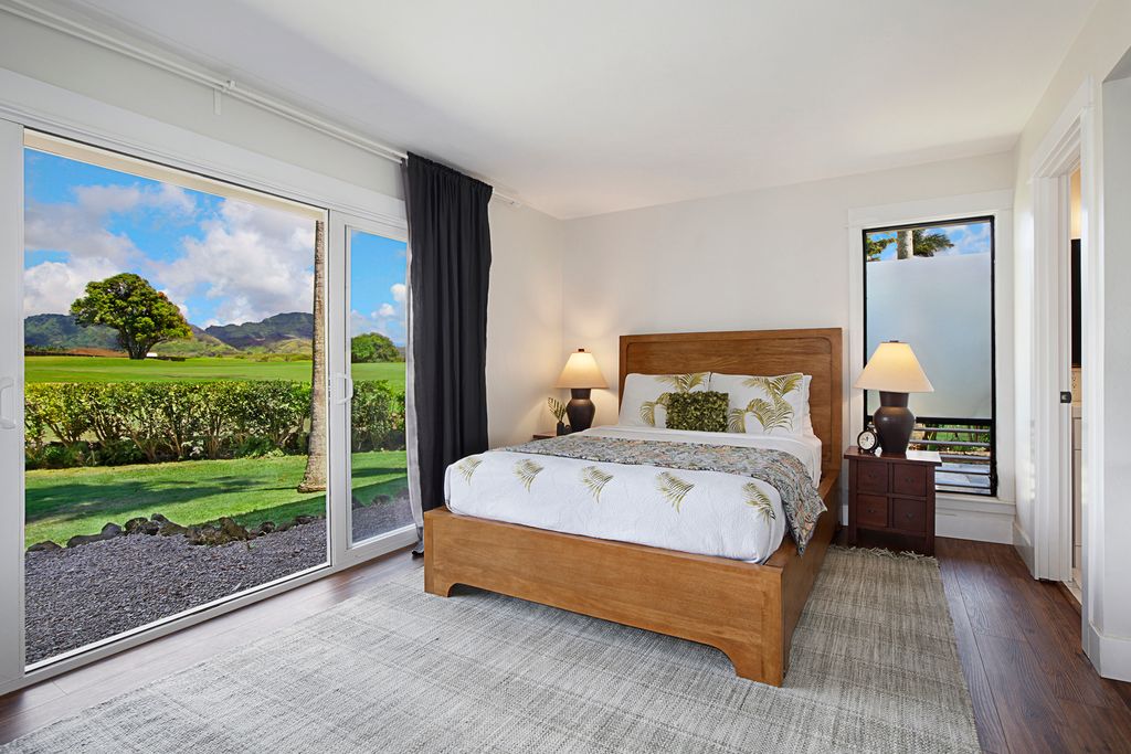 Two entry level bedroom suites each have private full bathrooms and direct access to the lush backyard, complete with golf course and mountain views. Wake up to gentle breezes and the soothing sounds of nature from your tropical retreat.