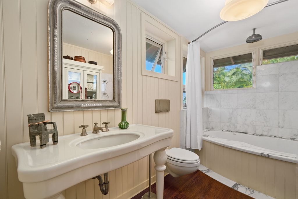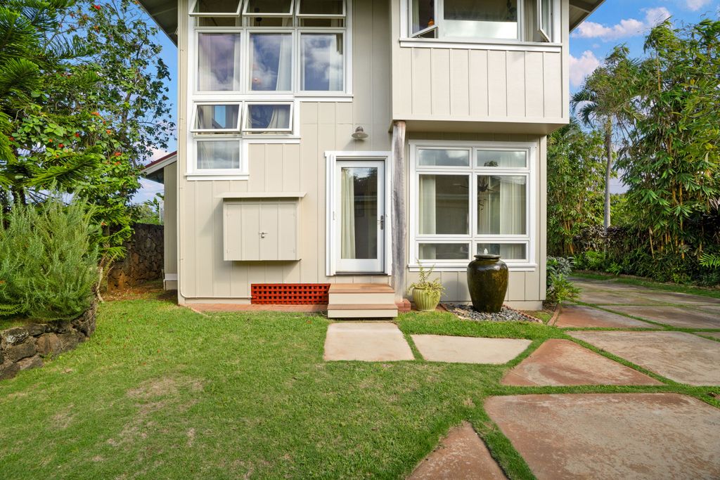 Tucked away down a private driveway in the heart of Kapa"˜a, this stunning 2 bedroom, 2.5-bath residence blends island charm with refined craftsmanship. The home has had major renovations. Surrounded by lush, mature landscaping, the home offers multiple secluded outdoor sitting areas, tranquil water features, and an inviting outdoor shower framed by a natural rock wall. Enjoy fresh avocados from your own tree and relax on the spacious upper and lower lanais, perfect for soaking in the beauty of Kaua"˜i.