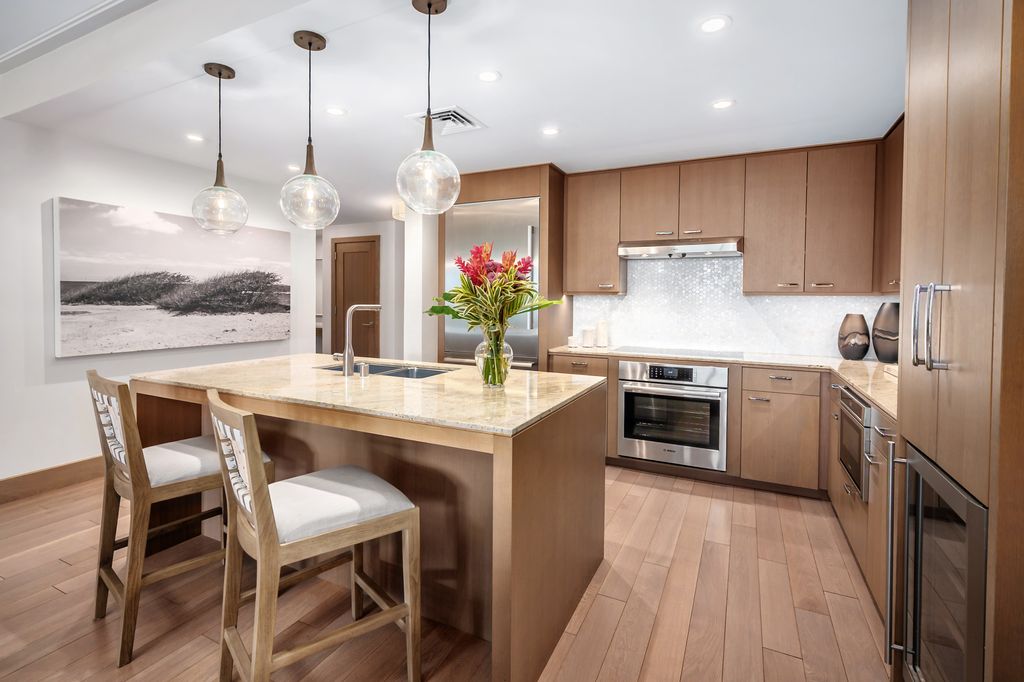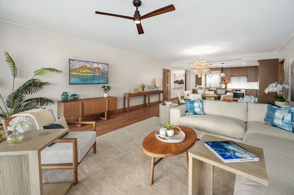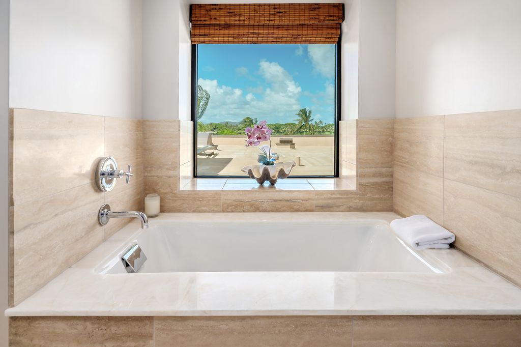 This gorgeous 3 bedroom/3.5 bath penthouse boasts beautiful Kauai sunrise views across the grotto pool to the Ninini Pt. lighthouse and Running Waters Bay from the four spacious lanais. The location of this home offers privacy and serenity and stunning views from every room of the tropical surroundings. Inside you'll find an exceptional level of finish, with thoughtfully designed custom cabinetry, natural stone vanities and beautifully appointed kitchen that feature Thermador and Bosch appliances. The residence is beautifully furnished by Henderson House and is offered fully turn-key.
