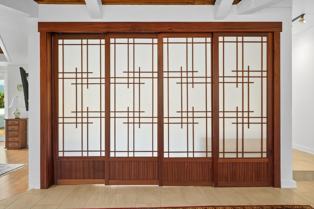 Extensively remodeled and re-wired in 2020, the single-level floor plan spans 2,774 square feet and features three bedrooms, three full baths, and a separate bonus room/office that could function as a private guest room or optional sleeping area. Custom design elements include Inspired Closets and African mahogany shoji doors that allow for privacy and flexible living area.