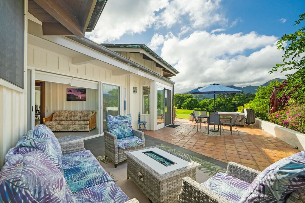 Ideally positioned in the heart of Princeville, this thoughtfully updated island residence offers a rare blend of privacy, comfort and timeless North Shore beauty. Surrounded by wonderful neighbors, the home enjoys a peaceful setting with expansive views of Namolokama, Hihimanu, and Mamalahoa Mountains.