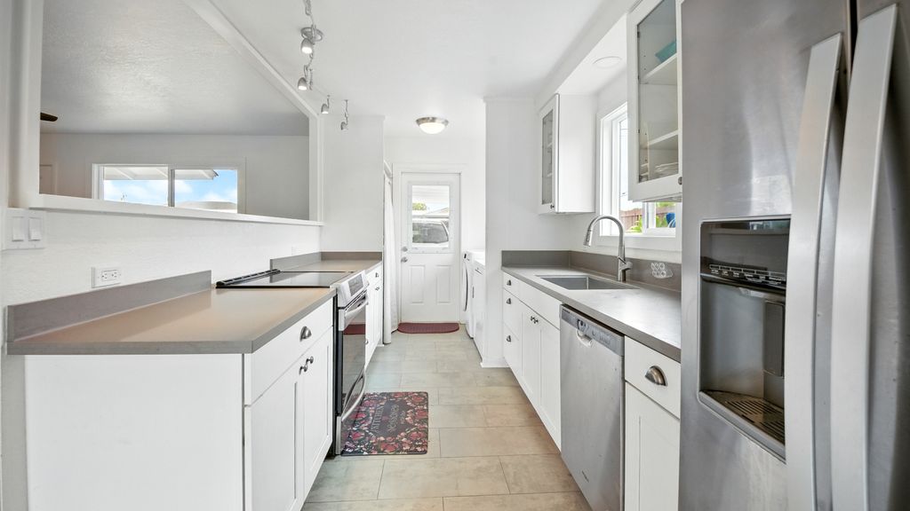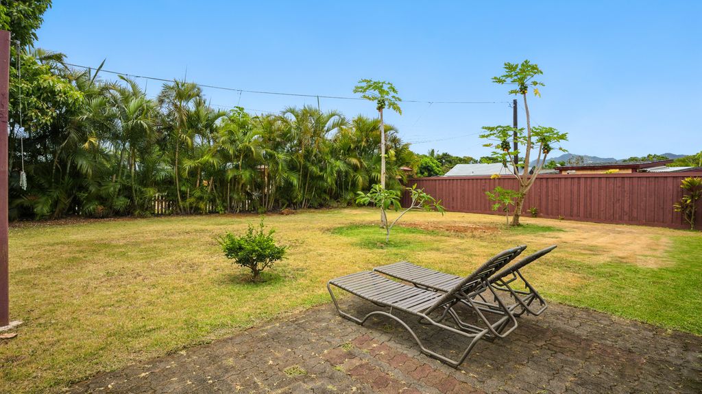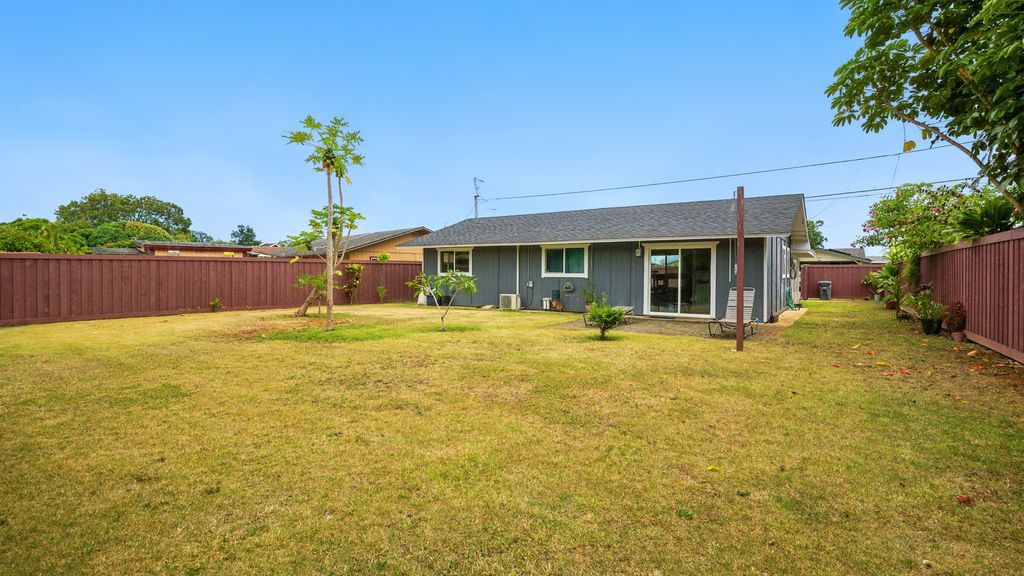 Completely remodeled inside and out in 2019, this turn-key property features a modern aesthetic with gray stone quartz countertops, brushed nickel finishes, soft white walls, a new roof and siding. Thoughtful upgrades since then include a split A/C unit in one bedroom, attic insulation, whole-house water filtration system, stylish ceiling fans throughout, and ethernet ports in most rooms, offering both comfort and convenience in a pristine, well-maintained setting. The fully fenced lot offers exceptional outdoor living with a large, flat backyard featuring papaya trees, plumeria, ti plants, herbs, and a row of mature Areca palms that provide natural beauty, privacy, and a soothing tropical ambiance. There's ample space for gardening, a children's play area, a hot tub, or even possibly an ADU.