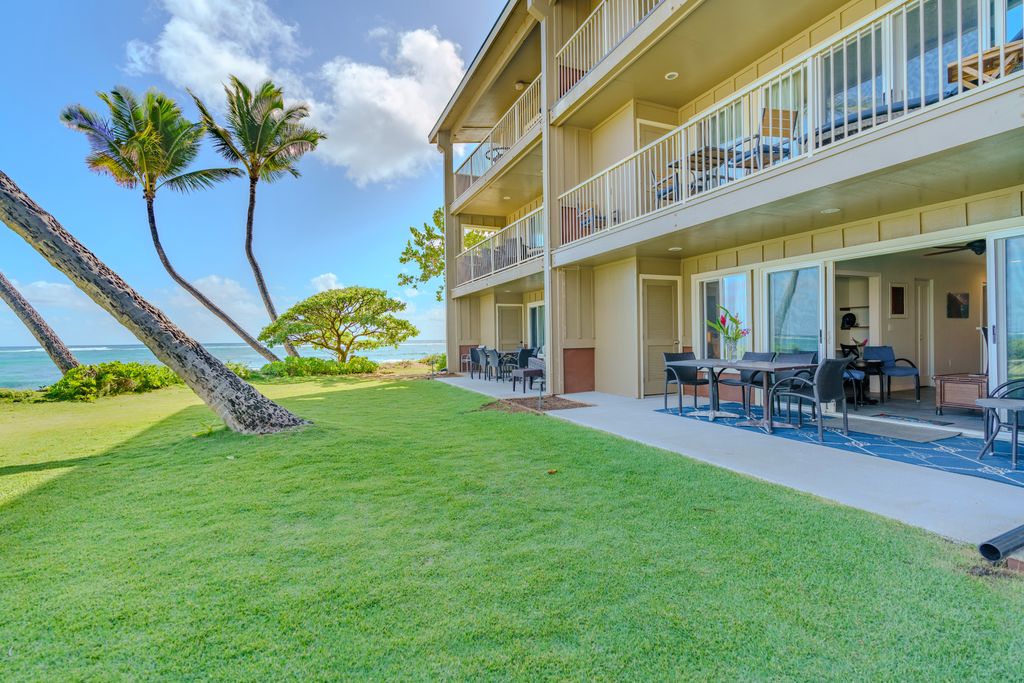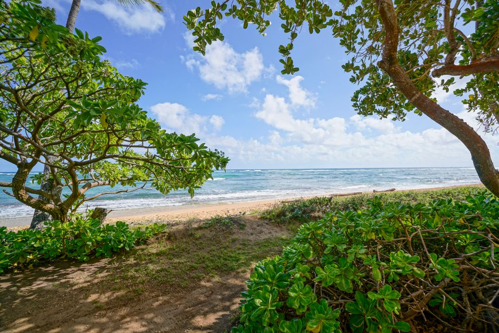Premium 2 bedroom 1st floor condo conveniently located in Kapaa. The proximity to Pacific Ocean is unparalleled; take ~25 steps off the lanai and your toes are in the sand. Enjoy watching the sun rise out of the Pacific from the comfort of the spacious lanai, which also features incredible ocean views. Whether you are looking for a vacation rental to add to your portfolio or an oceanside residence, this condo will not disappoint. Opportunities like this rarely become available and must see to fully appreciate. Very strong rental history.