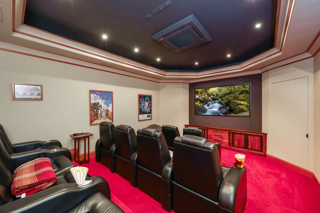 Brazilian cherry wood floors, central five-zone AC, and ipe wood exterior wainscoting are just a few of the exceptional characteristics that make this home shine. Two expansive primary suites offer vast panoramic views providing an even more intimate retreat within the retreat itself. The dedicated home theater, complete with stadium seating for 10, elevates home movie night to a cinematic experience. And the entertainment doesn't stop there - it's further enhanced by a spacious game and entertainment room, featuring cork flooring for a unique touch, and a see-through window to the outdoor pool area.