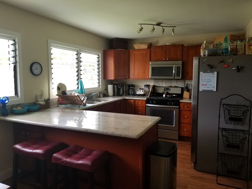 Ultra-convenient location is a short walk or easy flat-land bike ride to the beach, Kapaa Town, schools, churches, Chicken In A Barrel, and other restaurants!