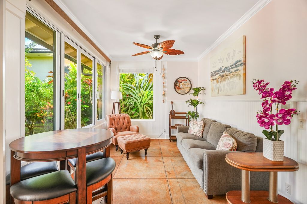 In the heart of Poipu Kai, this authentic plantation-style residence blends timeless materials like hardwood, granite, beadboard, lava rock, etc., with modern utility and lighting throughout, creating an ideal turnkey VDA vacation rental or personal South Shore retreat in one of Kauai's most desirable locations.