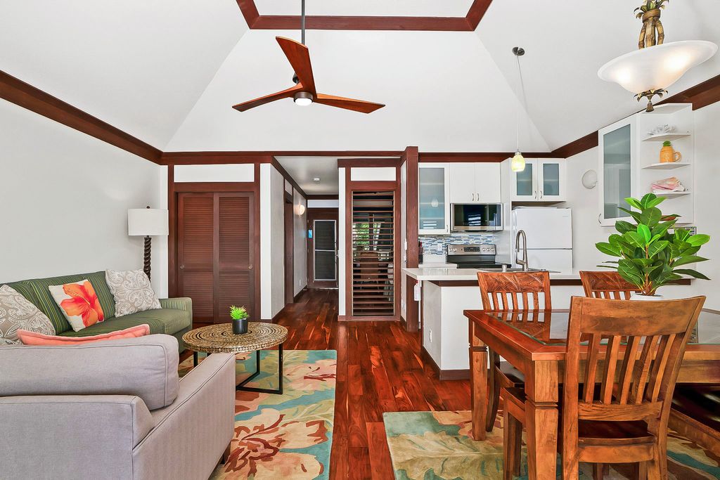 Enjoy this beautifully remodeled Kiahuna Plantation unit with a true distant ocean outlook, visible from the top-floor lanai and living area. This 1-bedroom, 1-bathroom condo combines classic plantation-style charm with thoughtful modern upgrades, all positioned in a desirable elevated setting.