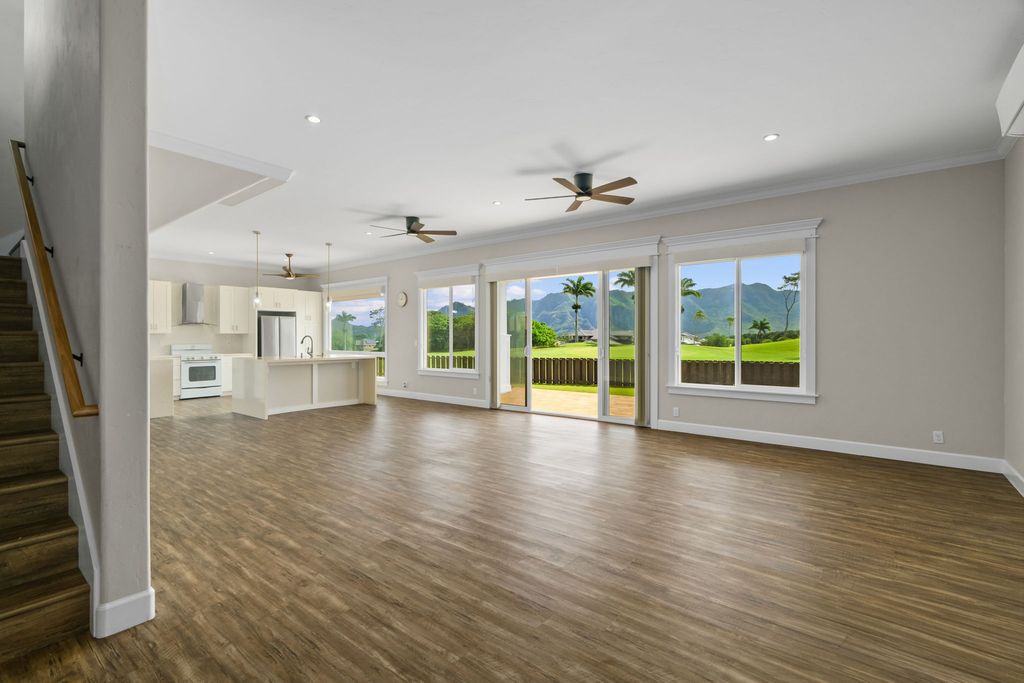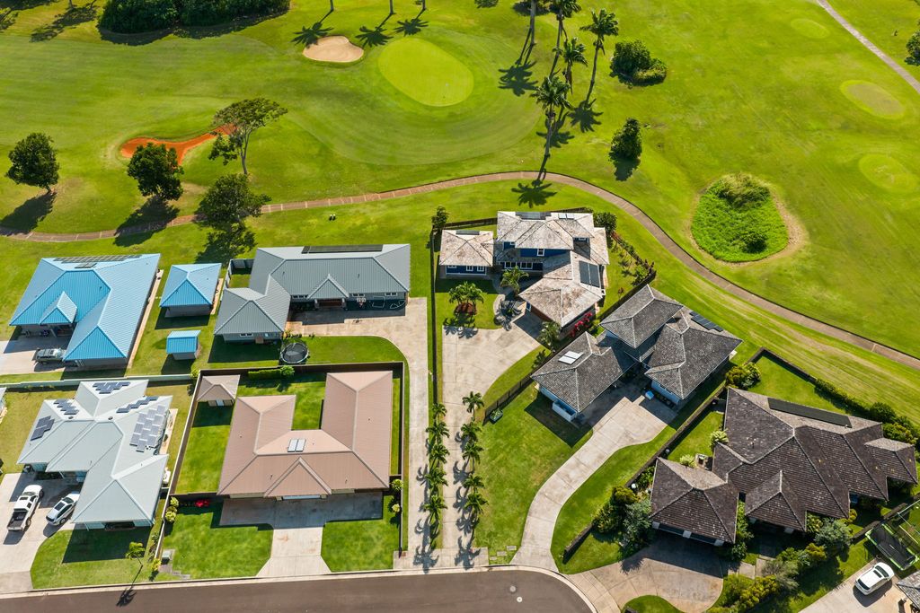With 2,929 square feet of refined interior living space set upon a substantial lot, the property invites a harmonious indoor-outdoor lifestyle. Fronting the lush greens of Puakea Golf Course, nearly every window captures breathtaking vistas of fairways and elegant mountain panoramas. A distant ocean view can be seen from the second story as well. Split air conditioning throughout, paired with photovoltaic energy, ensures year-round comfort with exceptional efficiency. Thoughtfully crafted walkways, an exclusive flag-lot setting, and an oversized garage for storage or personal fitness complete this private, luxurious island haven.