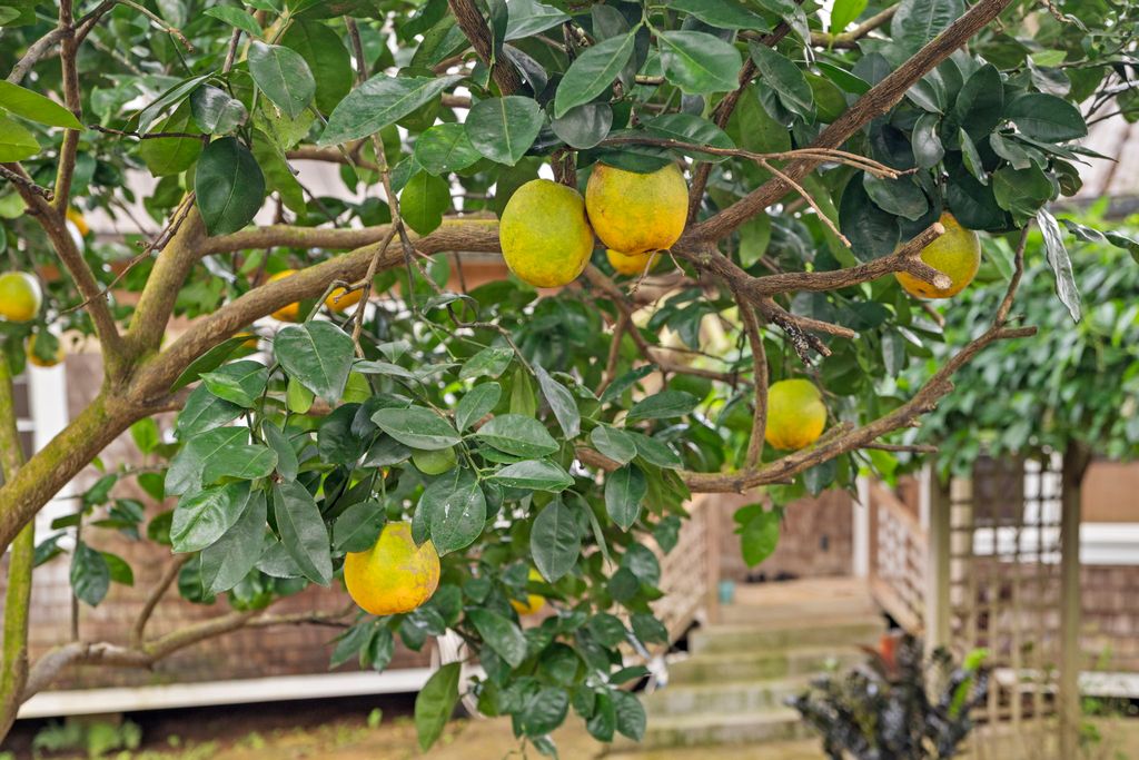 Eight mature monkey pod trees line the entrance, creating a serene arrival. The eastern boundary is defined by an 80-foot lilikoi hedge, offering privacy along with seasonal fruit. On the southern side of the home, a custom cedar pergola framed with Nam Nuk vines forms an inviting outdoor living space, where yellow blooms accent the garden for several months each year.