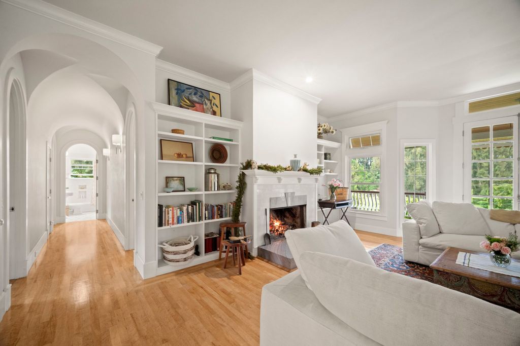 Inside, 10-foot ceilings enhance airflow. In the living room, a wood-burning fireplace provides warmth and romance on rainy nights. The main living space features 3 sizable bedrooms and two full bathrooms.