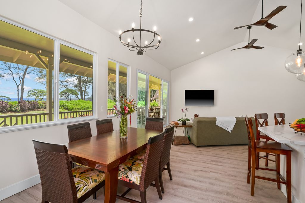 Nestled right across from the ocean on a peaceful cul-de-sac, Makamae offers all the benefits of coastal living on Kaua"˜i's breathtaking North Shore. Enjoy sweeping ocean views from the expansive covered lanai that stretches across the front of the home "” an ideal spot for morning coffee, evening pau hana, or simply relaxing and soaking up the views and island breezes!