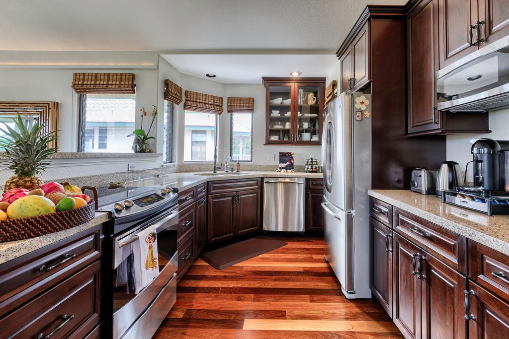 From this ideal location, enjoy the convenience of world-class golfing, beaches, surfing, tennis, hiking, biking, shopping and dining. Also, the quintessential surf town of Hanalei and its iconic crescent beach are only a short drive down the road!