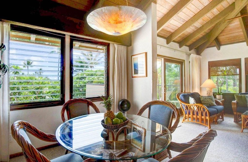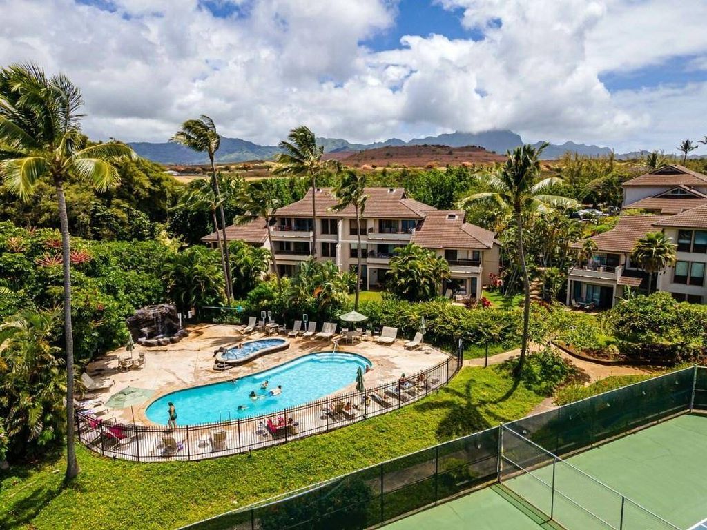 Updated Kahala condo. Corner unit featuring ocean views from the top floor located in the prized 600 building. 621 is located within the Poipu Kai Resort on Kauai's south shore. Ample space to enjoy your morning coffee with views from two furnished lanais - one of which boasts an outdoor table that is perfect for dining alfresco. Beautifully appointed, the open interior is designed with vaulted wood-beam. Ocean views from kitchen, dining and living room areas. Master bedroom features lanai access large walk in closet and updated bathroom and shower. Just steps from a scenic greenbelt walking path, BBQ grills, shared tennis courts, access to two shared pools, and a hot tub.